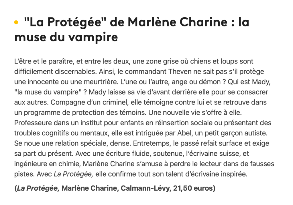 Franceinfo Culture: Article « Sept polars et thrillers incontournables de la rentrée »